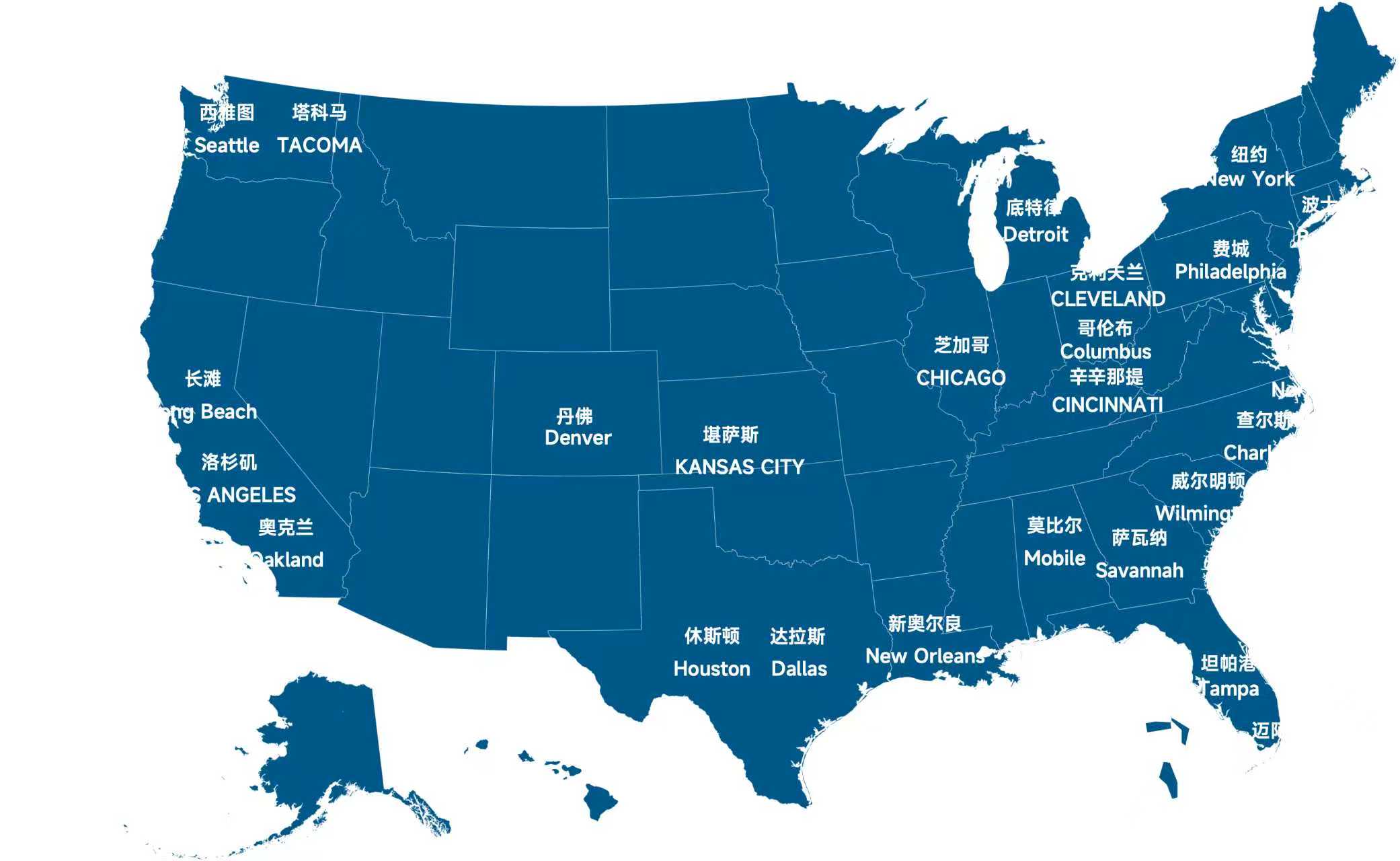 The service network covers major ports and IPI points in the west, China, and East States. Support FCL, LCL and air transportation modes. -